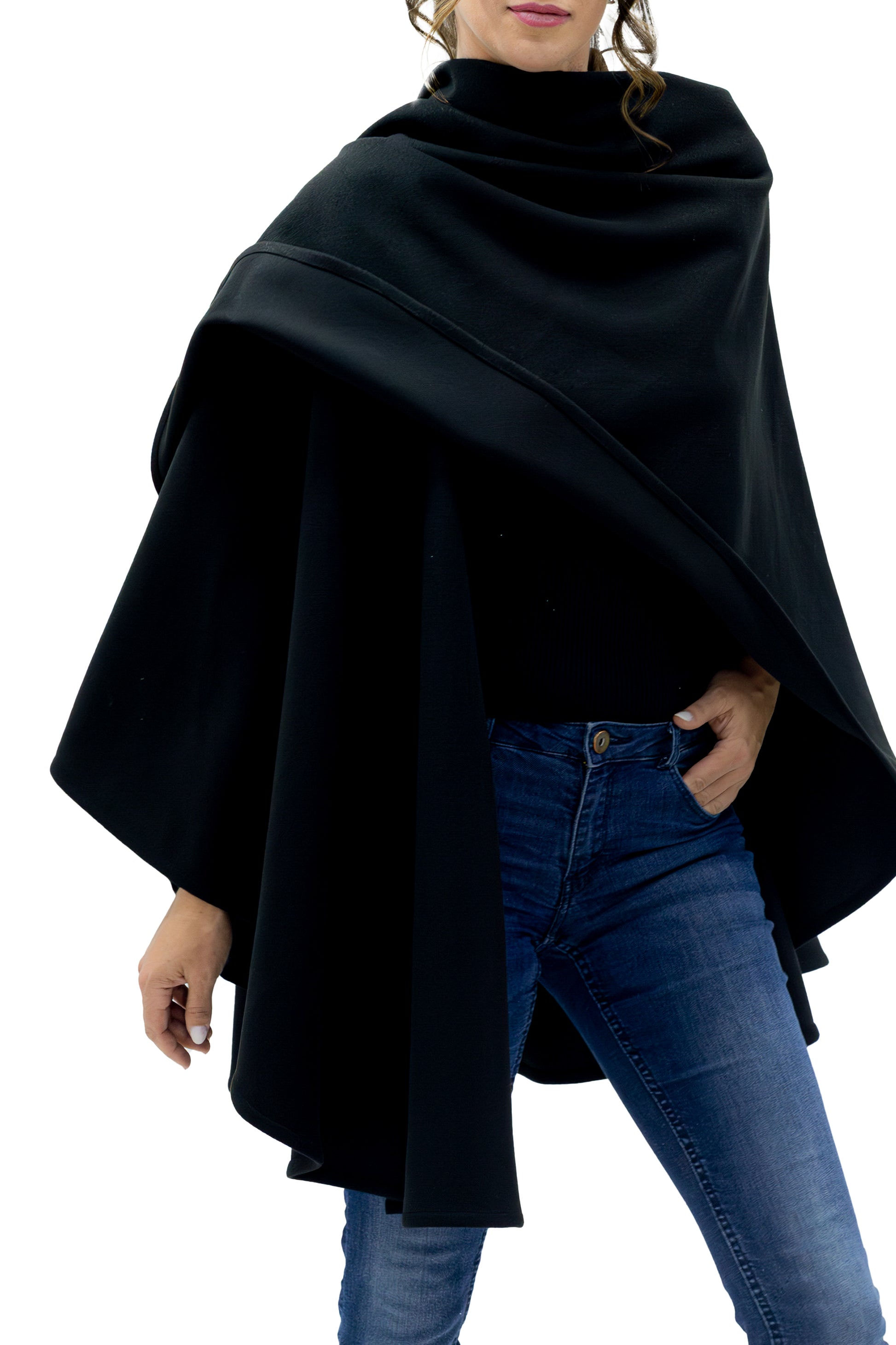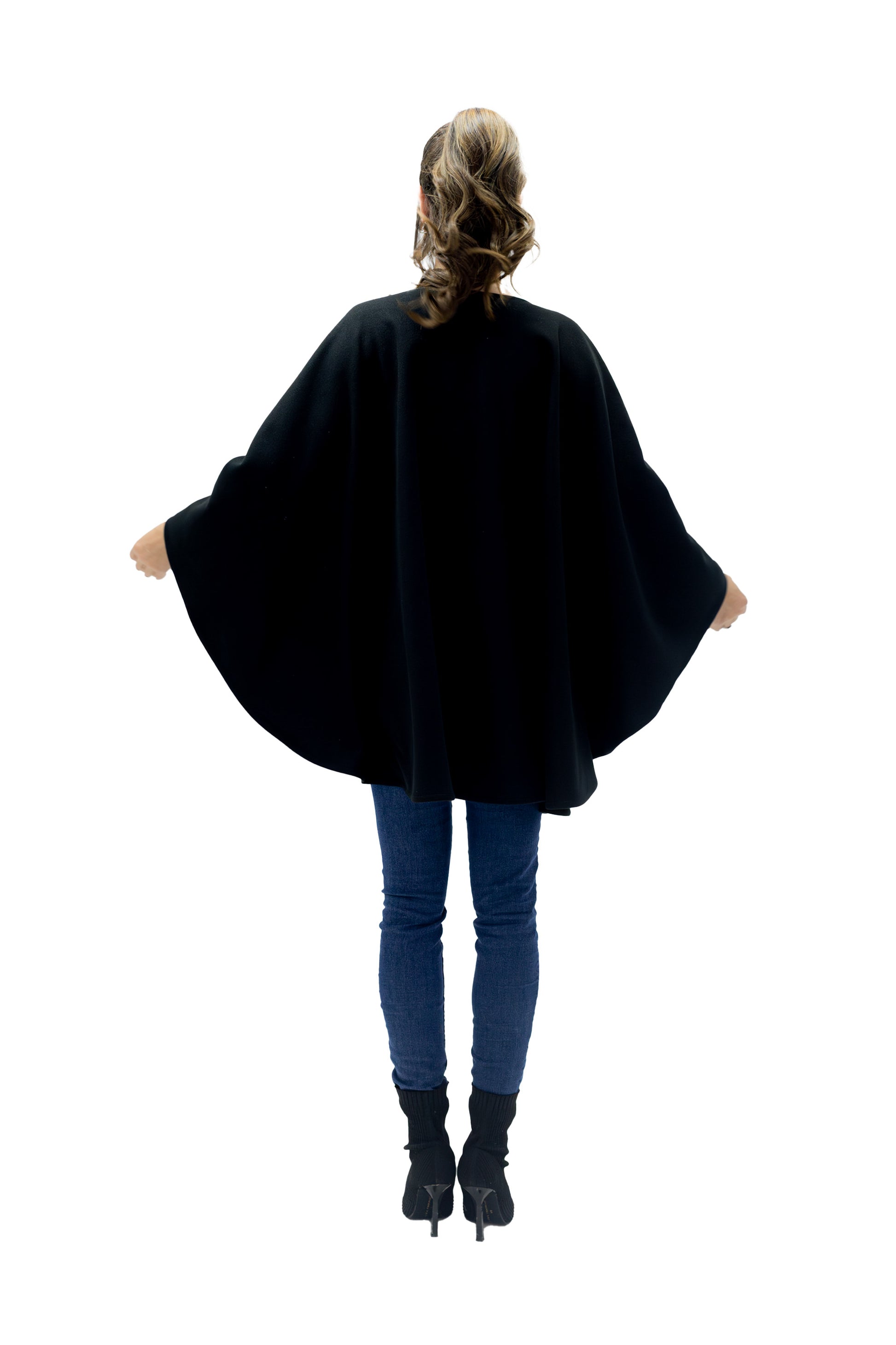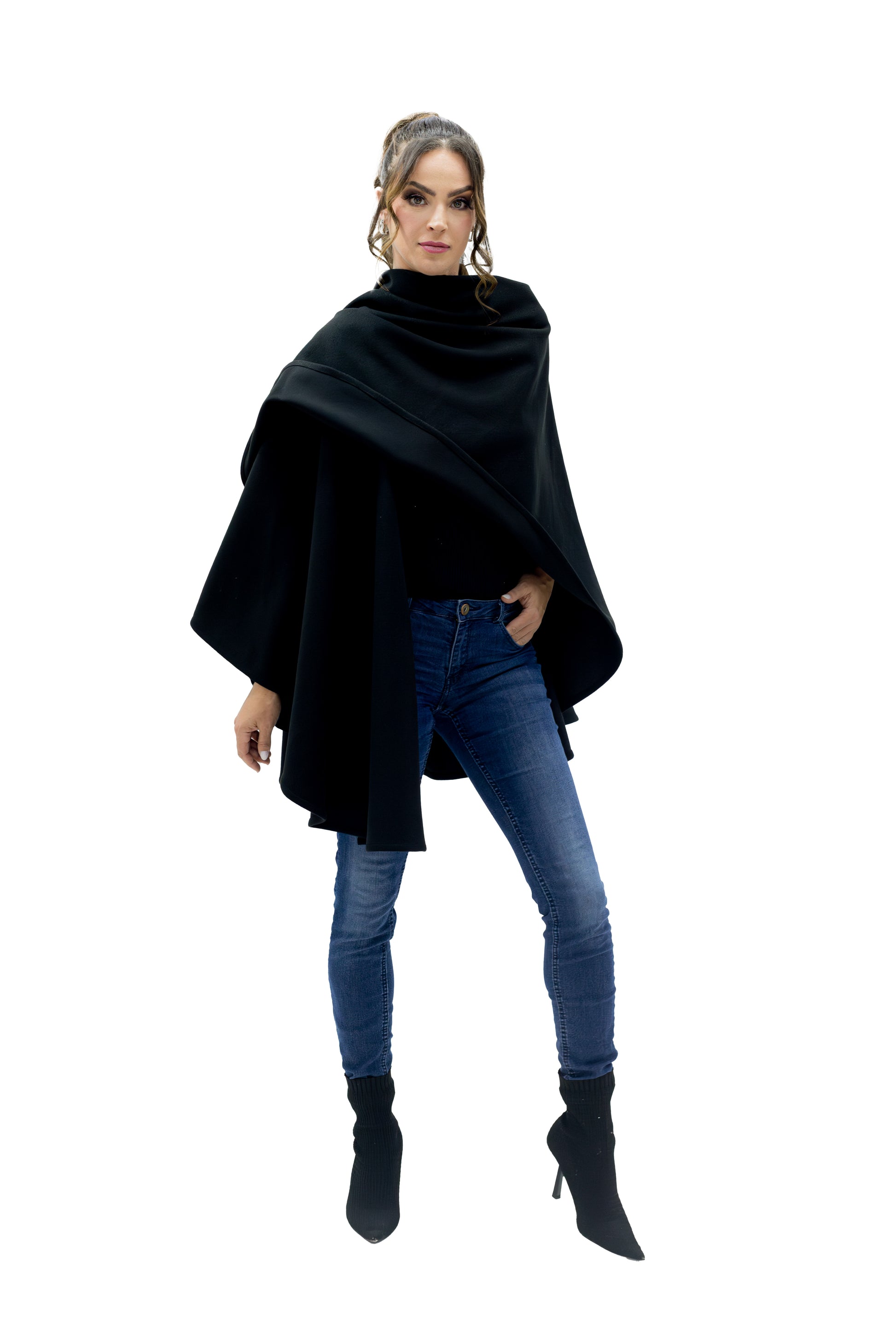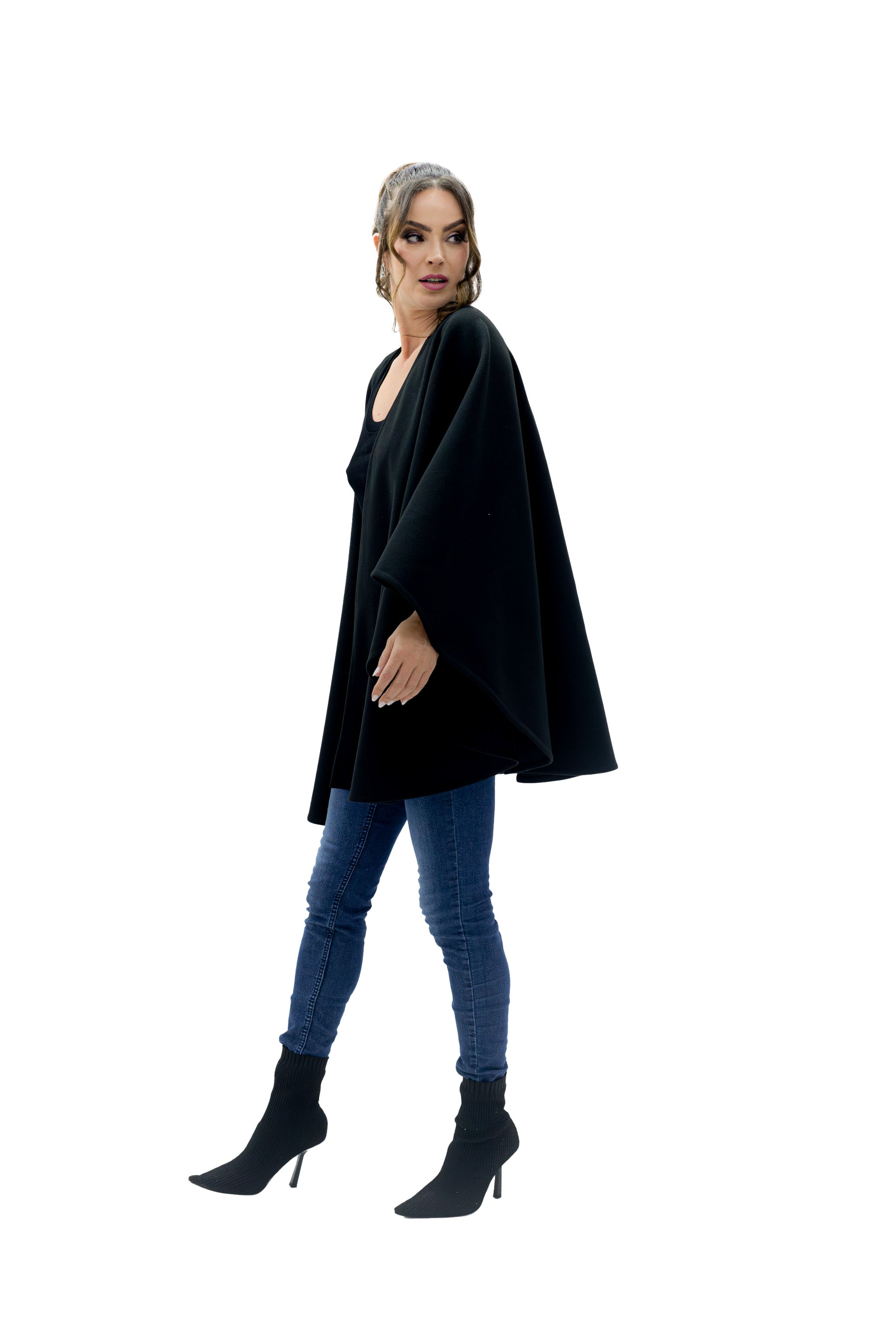 Capa negra elegante, redonda, con caída ligera, que permite mantener el calor en temperaturas bajas. Ideal para los fríos de otoño e invierno próximos.