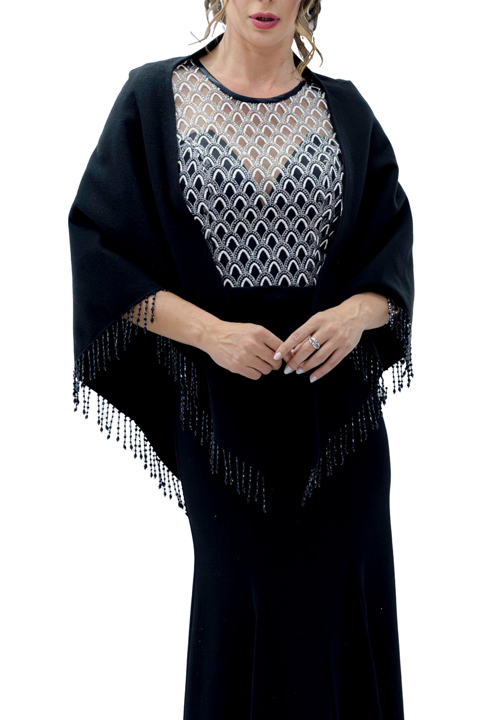 Capa de triangulo con detalles de pedrería que cuelga en la parte inferior. Ideal para eventos formales o de fiesta.